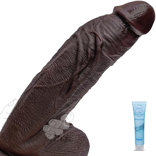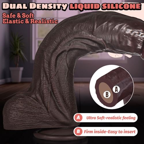 10.5” Realistic Huge Black Dildo, 2.3” Diameter Curved Thick Dildo with Strong Suction Cup for Clitoral Vagina Anal Stimulation, Giant Real Skin Silicone BBC Dildos Sex Toys for Men and Women