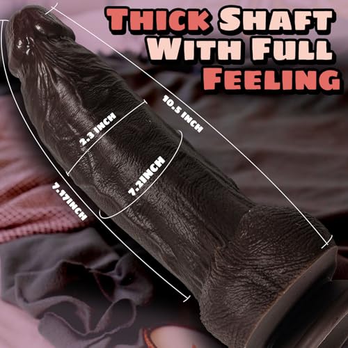 10.5” Realistic Huge Black Dildo: This bbc dildo flesh strike a perfect balance between size and realism. The realistic silicone dildo enough to satisfy size queens, but still doable for beginner’s looking to expand their horizons. It’s fair to say, this girthy dildo is quite large, diameter Length 2.3”.When he enters, you feel him filling you up completely like a man. The sex toy consoladores is perfect for women men beginner masturbation, g-spot stimulation, clitoris and anal play for more pleasure.