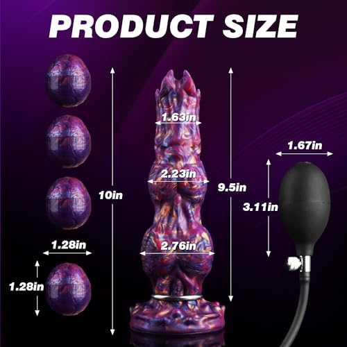 10″ Monster Dildo Huge Thick Ovipositor Dildo with 4 Eggs, Big Fantasy Anal Dildos Horse Knot Dragon Dildos with Inflatable Pump, Dog Sex Toy with Strong Suction Cup, Adult Toys for Women Men