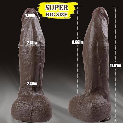 2.67″ Diameter Super Thick, Realistic BBC Dildo: With 11.61 in total length, 8.46 in circumference at the thickest part. This is a eye-rolling leg-shaking soul-taking sex toy. The black dildo is super girthy, would not recommend this toy for beginners,but for advanced player who seek the deeper pleasure. The thickness and width were absolutely perfect, giving her that deeply satisfying, stretched feeling she craves. Every inch felt amazing, filling her completely and leaving her breathless