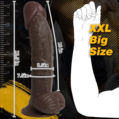 12.5″ Big Black Horse Dildo – 8″ Girthy XXL Huge BBC Dildos with Large Suction Cup, Thick Giant Dual Density Silicone Dildo for Vagina Anal Play, Massive Adult Sex Toys & Games for Men Women Gay