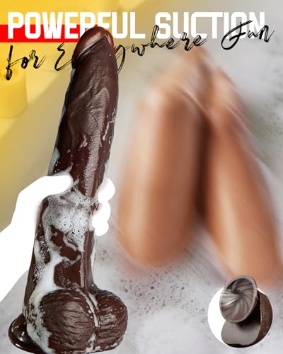 12 Inch Black Realistic Dildo Feels Like Skin, with Huge Strong Suction Cup Dildos for Hands-Free Play, Soft Safe Material Dildo Anal Adult Sex Toys for Men and Women Pleasure