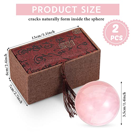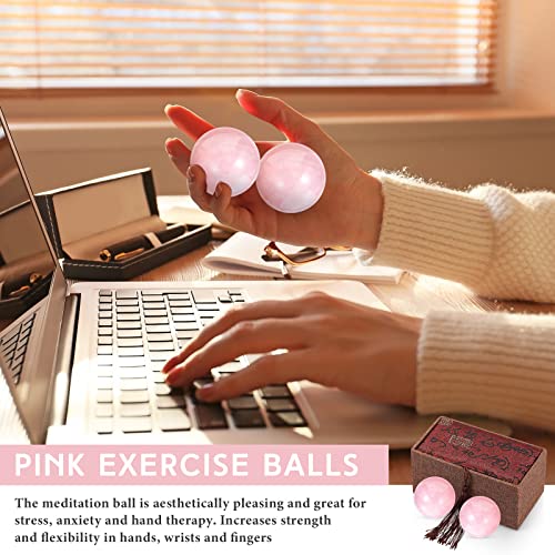 2 Pcs 1.4″ Chinese Health Exercise Stress Baoding Balls Rose Quartz Pink Massage Balls Small Meditation Balls with 1 Box Packed for Hand Therapy Hand Exercise Ball