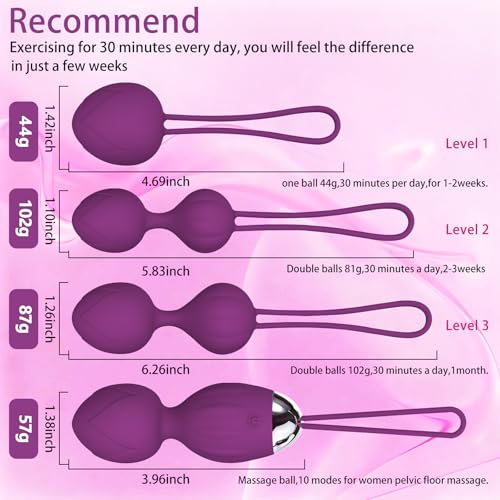 4 Kegel Balls for Women Tightening Exercise Set, Different Kegel Weights for Pelvic Floor Muscle, Pelvic Floor Trainer System for Beginners & Advance (Purple)