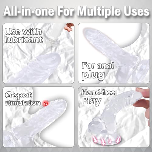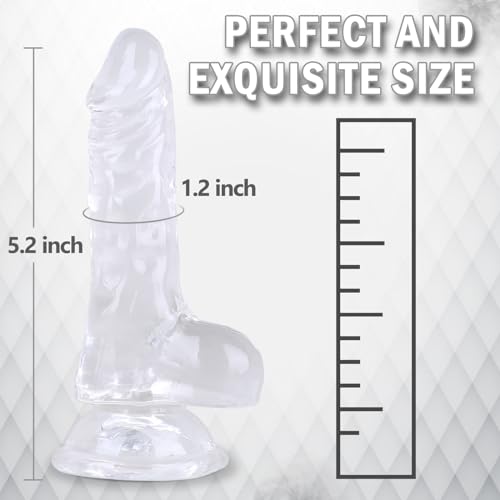 5.2 Inch Realistic Anal Dildo with Powerful Suction Cup, Small Anal Plug Dildos for Beginner, G-Spot Stimulation & Anal Training, Butt Plug Toys for Women & Men, Anal Trainer Sex Games (Transparent)