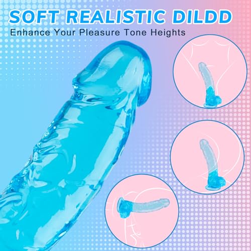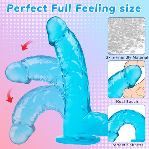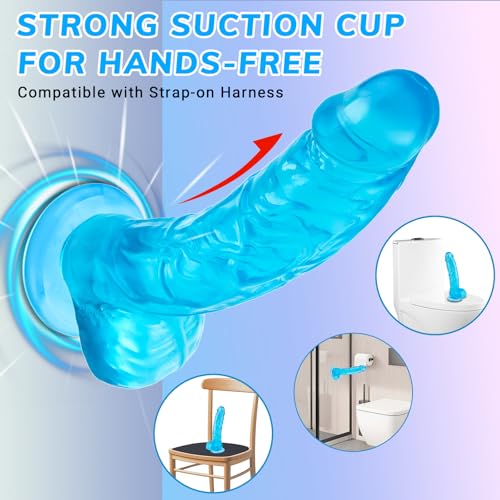 7 Inch Realistic Silicone Dildo, Soft Blue Dildos Sex Toy with Strong Suction Cup, Adult Toys for Vaginal G-Spot and Anal Play, Waterproof Flexible Lifelike Penis for Women Men Beginners Couples