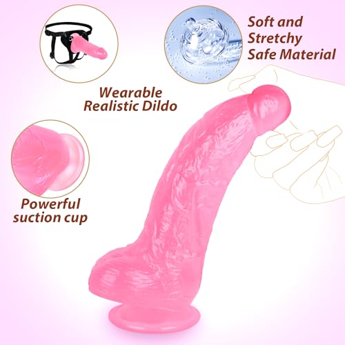 8.3 Inch Dildo,Soft Thick Dildo,Small Glans Pink Realistic Anal Big Dildo with Strong Suction Cup,Safe Material Men Penis Adult Sex Toy,Vagina Anal Stimulate G-Spot for Women or Beginner Sexual