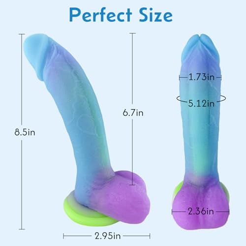 Ergonomic design: perfect size g-spot dildo;The 8.5-inch colorful dildo has an insertable length of 6.5 inches, a perfect size for the experienced or beginners learning, g-spot stimulation or anal play.Its natural bent curvature is designed to better fit the human body structure, maximizing stimulation of sensitive points. Imagine using it to rub your labia, and then slowly slide it into your vagina, becoming more and more fuller. You can adjust the speed according to your own preferences and experience the pleasure brought by friction and impact