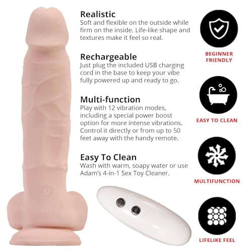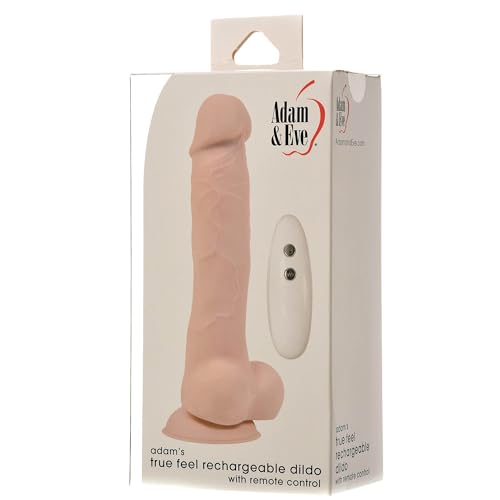 Adam & Eve Adam’s True Feel Rechargeable Dildo with Wireless Remote Control, Big Thrusting & Vibrating Adult Sex Toys for Women & Couples, Suction Cup Base Long Distance Realistic Vibrator, Beige