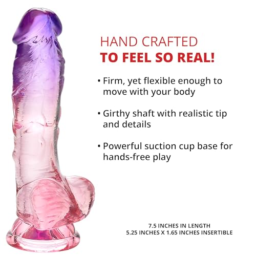 Adam & Eve Sunset Dreams Dildo 7.5 in. Multicolor Flexible Realistic Dildo with Firm Shaft Veins Balls & Suction Cup Base for Hands Free Play Soft & Fleshy Insertable Phallic Head for Girthy Pleasure
