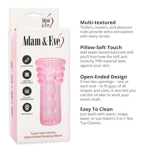 Adam & Eve Super Head Honcho Masturbator, Upgraded Male Stroker with Strong Suction and Longer Tunnel, Soft Stretchy TPR, Open Ended for Easy Cleaning, Textured Sleeve for Intense Stimulation