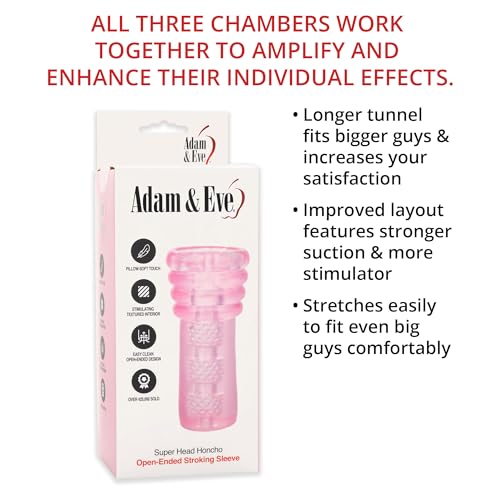 UPGRADED SUCTION FOR INTENSE STIMULATION: The Adam & Eve Super Head Honcho Masturbator features three powerful suction chambers that enhance pleasure with every stroke. Experience oral-like sensations that feel incredibly lifelike as you slide in, making solo play even more exciting