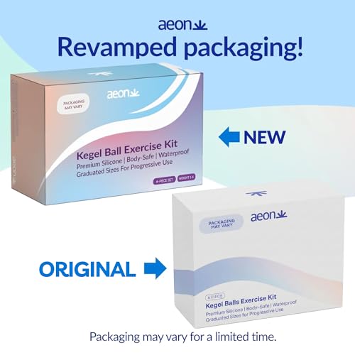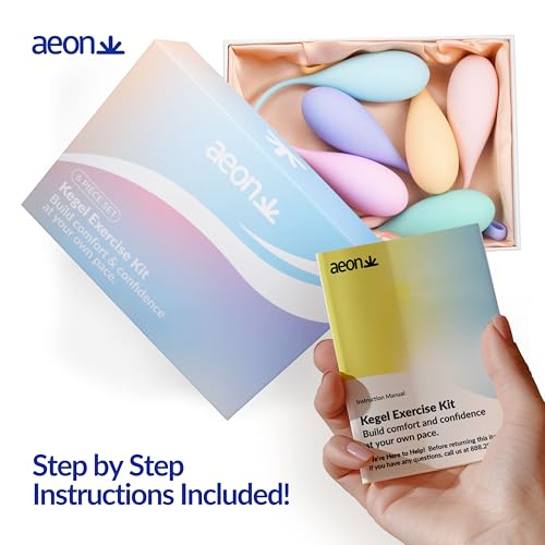 AEON Kegel Exercise Balls Set – 6 Progressive Silicone Pelvic Floor Trainers. Body-Safe, Soft & Flexible. Includes Storage Bag & 1.3 Oz AEON Personal Glide – $10 Value – Beginner to Advanced