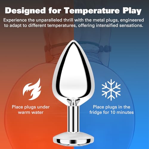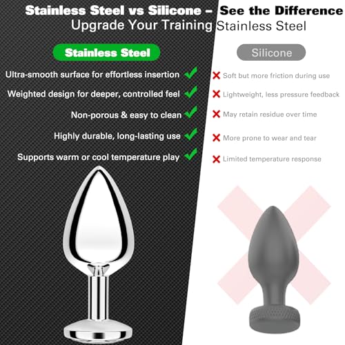 Anal Plug Beginner Set, 4 PCS Stainless Steel Butt Plug Training Kit with Jewel Base, Metal Anal Plugs for Gradual Training, Wide Base for Safety & Secure Fit for Women & Men Couples