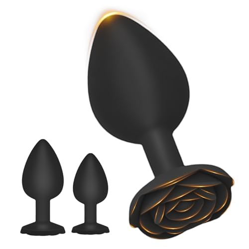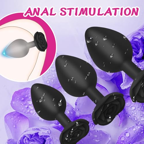Anal Plug Rose Sex Toys,3PCS Silicone Butt Plugs Training Kit,Prostate Massager for Starter Beginner Men Women Couples(Black)