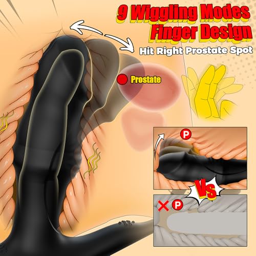 5 in 1 Sliding Ring + Prostate Massager + Anal Sex Toys + Penis Ring + Taint Stimulator: This anal dildo is combined with thrusting vibrator plus sliding ring, finger wiggling vibrator, triple penis ring, taint vibrator for men, the wiggling finger butt plug and thrusting sliding ring can hit the p-spot and massage the prostate and anal, the bump on the base massage relax the taint and triple cock ring exercises the penis and prolongs pleasure