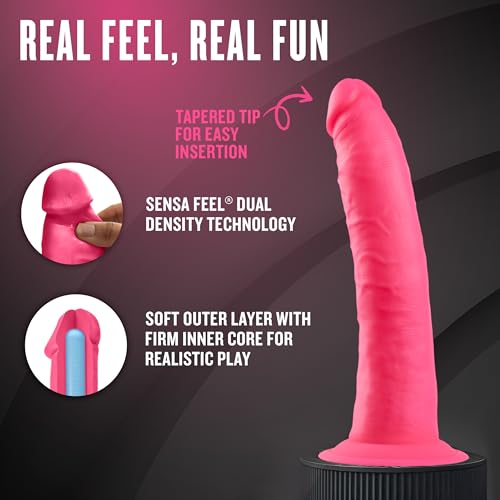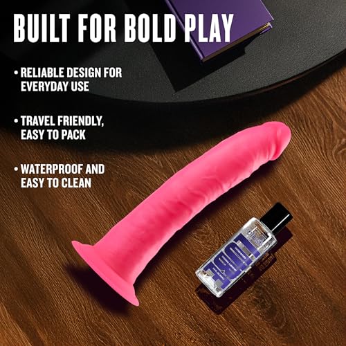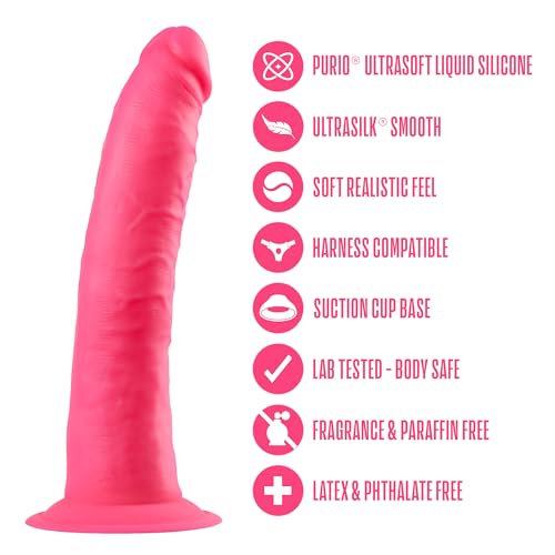 Blush Novelties Neo Elite, 7.5 Inch Premium Dildo PurioTM Silicone, 1.5 Thick Shaft Ultrasilk Smooth Sensa Feel Dual Density, Suction Cup Harness Compatible Hands Free Play, Adult Sex Toy – Neon Pink