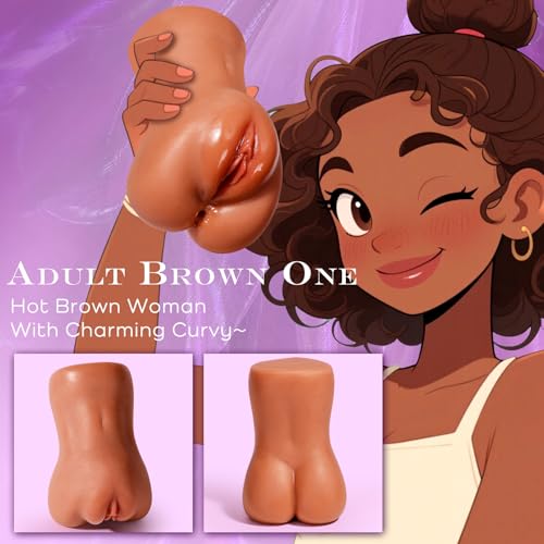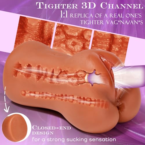 Brown Realistic Pocket Pussy Sex Toys for Men, Male Masturbator Sex Doll Stroker with 3D Deep Textured Vagina & Tight Anus Male Adult Sex Toys, Portable Fake Pussy Ass Toy for Man Masturbation Orgasm