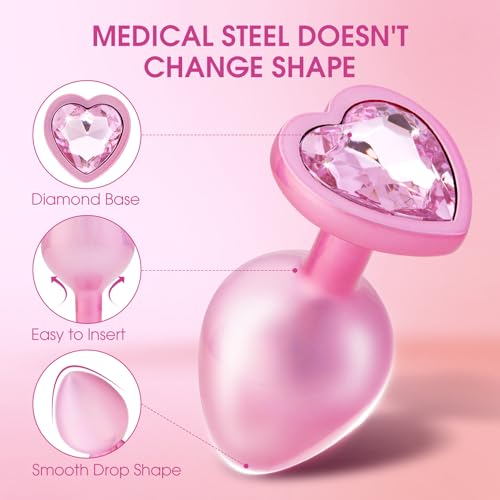 Butt Plug Anal Sex Toys – UTIMI Anal Plug with Crystal Diamond Base Adult Anal Trainer Kit Anal Bead for Women Men and Beginners Prostate Massage | 3 PCS, Pink