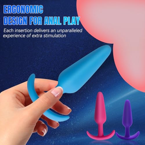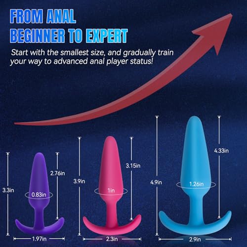 Butt Plug Training Kit with 3 Silicone Anal Plugs,Beginner to Advanced Set with Flared Base,Anal Plugs for Men, Women & Couples.