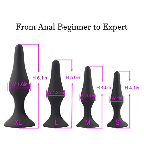 ✅[DIFFERENT SIZE]Anal Plugs 4 Different Sizes Pieces & Increasing Length and Girth. From Fine to Coarse Insertion Design.
