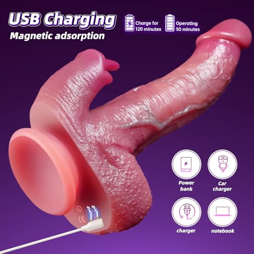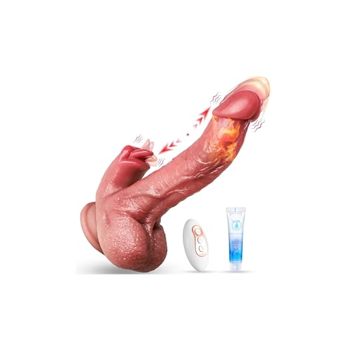 【Multi-functional Stimulating Adult Toys】This thrust dildo has 9 vibrations, 9 thrust combinations and licking modes, the thrust mode can extend the length of the penis, penetrate deep into the vagina, explore and hit your sensitive points, the vibration mode can stimulate the vagina, anus, prostate or other erogenous areas at high frequency, the unique soft mini tongue can stimulate the clitoris, giving you a double real sexual feeling, exploring more possibilities, and orgasm becomes easier. Meanwhile, the dildo heats up to 107°F after 107-107 minutes to provide warmth flush with the body for the most realistic experience.
