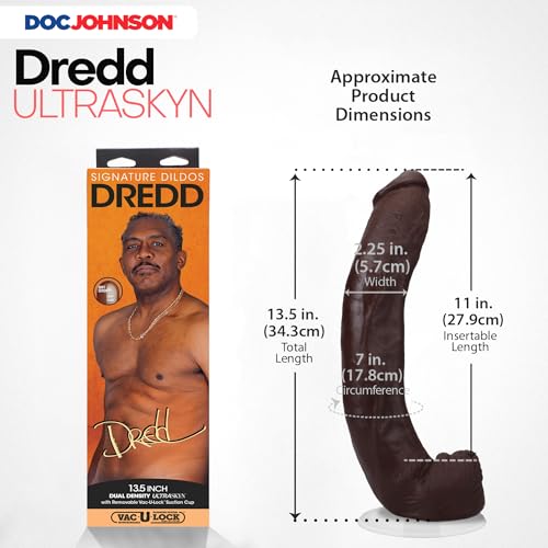 Doc Johnson Signature Series – Dredd – 13.5 Inch ULTRASKYN Dildo with Removable Vac-U-Lock Suction Cup – F-Machine & Harness Compatible – for Adults Only, Chocolate