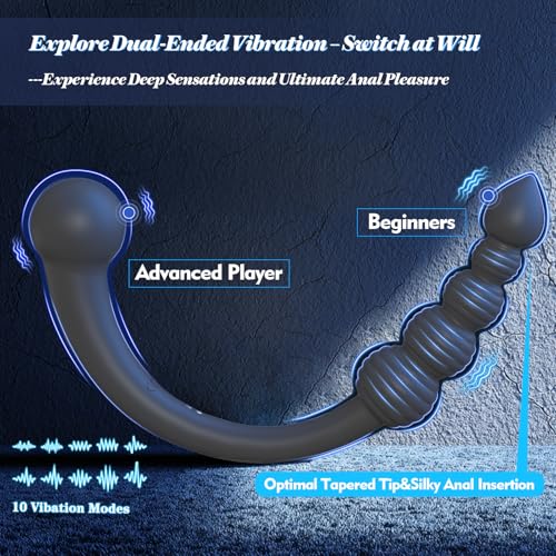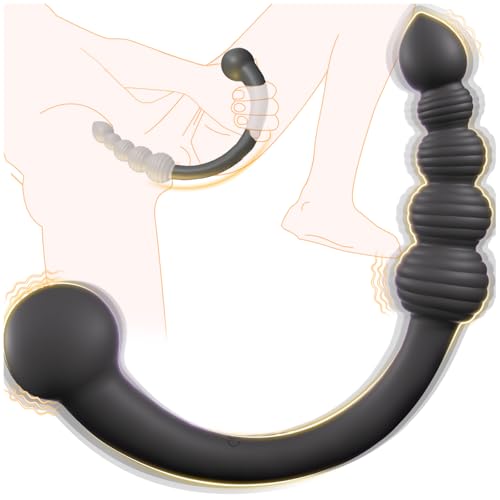 Dual-Ended Vibrating Prostate Massager Anal Beads Sex Toys, Curved Anal Dildo Butt Plug Vibrator, Male Adult Sex Toy for Men Women Couples, Porinda Long Prostate Wand Anal Trainer Game Play