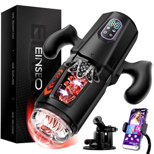 EINSEO Male Masturbator with Handle & Phone Holder – AI Sync Male Sex Toy for Men Stroker with 7 Thrusting Rotating & 7 Vibrating Licking Modes, Pocket Pussy Sex Machine with Suction Base Bath Item