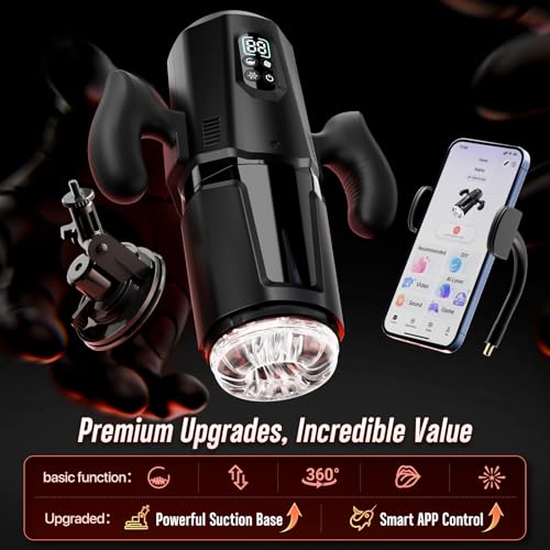 Male Masturbator with Dual Handles & Phone Holder: This upgraded mens sex toys features ergonomic dual handles for a larger, more comfortable grip and enhanced stability, giving you better control during use. It comes with an extendable phone holder that fits most devices, allowing you to easily watch videos or enjoy interactive content. With a strong suction base and 180° adjustable angle, it securely attaches to smooth surfaces, enabling a truly hands-free, immersive experience