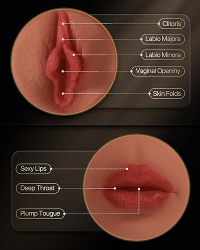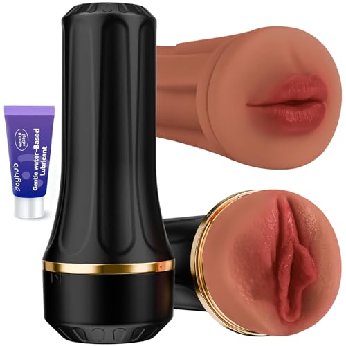 EINSEO Sex Toys Male Masturbator with Dual Sleeves – 7.5in Pocket Pussy & Mouth Textured Soft TPE Channel Adult Blowjob Toys for Men, Adjustable Suction Male Manual Stroker, Easy-Clean & Discreet