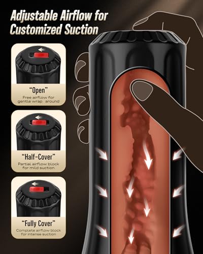 Adjustable Suction Control for Custom Pressure and Vacuum Feel: This male sex toy includes an airflow control vent to create adjustable suction during use. By opening, half-covering, or fully covering the air hole, you can create a lighter, medium, or stronger vacuum feel. This added control makes the manual stroker more personalized than an ordinary masturbator