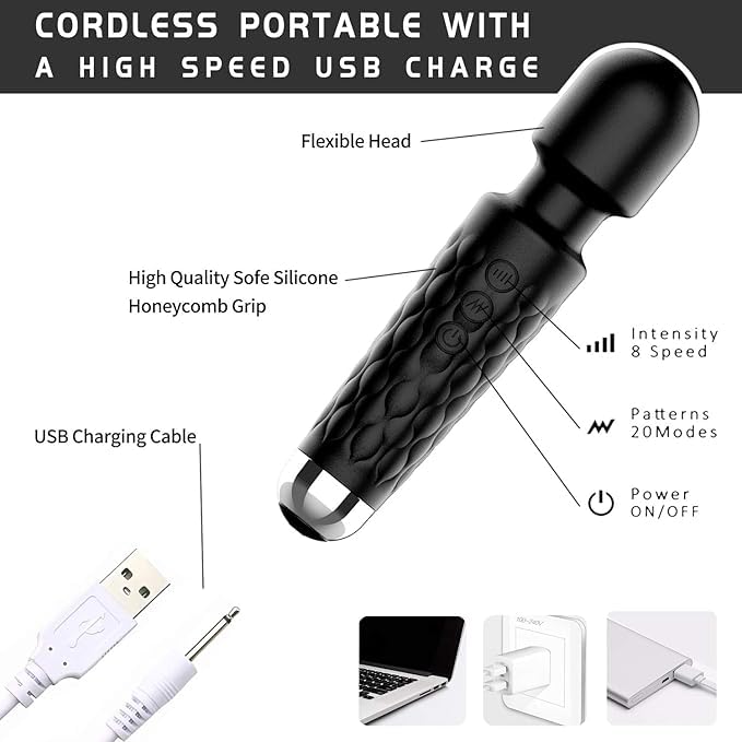 Electric Vibrator Wand,Adult Sex Toy Wand, Clit Vibrator, Vibrators Massager,G Spot Dildo,Sex Vibrators,Clitoris Stimulation,with 8 Speeds & 20 Patterns, Waterproof