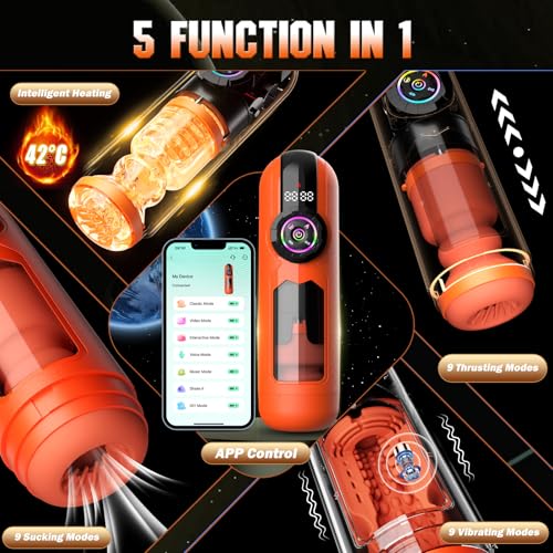 【9*9*9*9 COMBINATION MODE=SEVERAL TIMES MORE ENJOYABLE EXPERIENCE & HEATING FUNCTION】The perfect combination of 9 telescopic & 9 vibration & licking modes, even 9 suction modes, allows you to try out different sexual experiences in various combinations. And thanks to the innovative heating function & APP Control, you can warm the inside of the male masturbator to any desired temperature, allowing you to experience the ultimate pleasure of sex with different women using just one product.