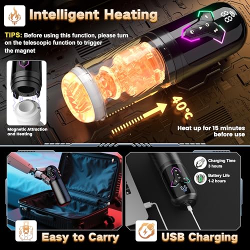 【10*10*7*5 COMBINATION MODE=SEVERAL TIMES MORE ENJOYABLE EXPERIENCE & HEATING FUNCTION】The perfect combination of 7 telescopic modes and 10 vibration & licking modes, as well as 5 suction modes, allows you to try out different sexual experiences in various combinations. And thanks to the innovative heating function, you can warm the inside of the male masturbator to any desired temperature, allowing you to experience the ultimate pleasure of sex with different women using just one product.