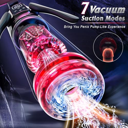 Powerful Suction for Harder, Longer, Stronger Sessions: Boost confidence and satisfaction with 7 adjustable vacuum suction modes. This male masturbator bring you a penis pump like experience, increases blood flow for bigger, harder, and longer-lasting erections. Each inhale and release mimics realistic oral sensations, delivering deep-throat pleasure and intense climaxes. Whether training endurance or seeking ultimate pleasure, the lifelike suction ensures explosive sensations every time.