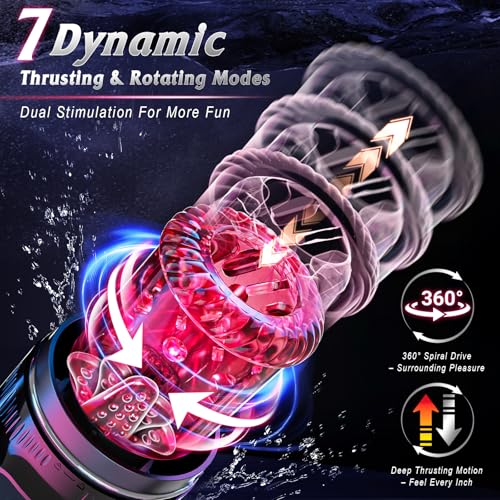 Thrusting & Rotating & 3D Stimulation Male Masturbation Machine: Experience ultimate pleasure with 7 telescopic & rotation modes combined with 7 vibration patterns. The 3D textured sleeve precisely targets every nerve on your penis, delivering a deeply immersive sensation. Each thrust and rotation synchronizes perfectly with vibrations, offering endlessly customizable, thrilling, and lifelike stimulation that elevates your solo sessions to a whole new level.