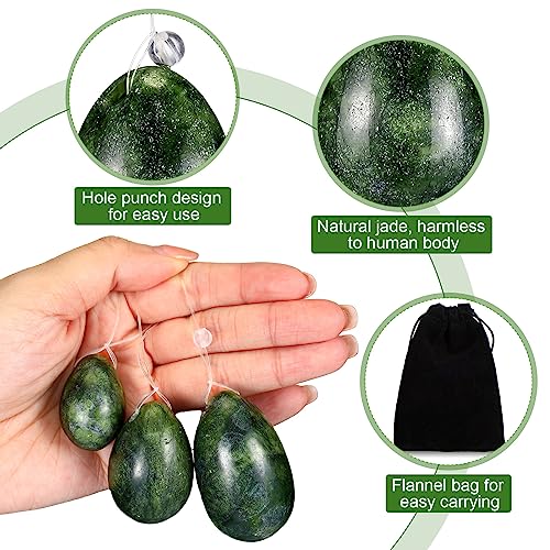 Inbagi 3 Pcs Kegel Balls for Women Yoni Stones Nephrite Jade Eggs Kegel Massage Stone Jade Crystal for Exercise Stress Release