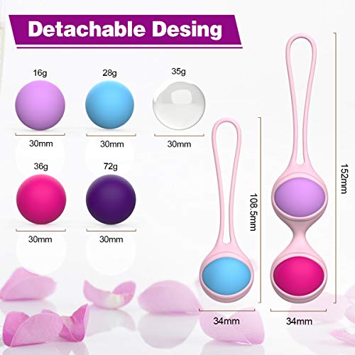 Pelvic Floor Exercise Set: Set includes 5 kegel balls in varying weights for progressive resistance training to strengthen pelvic floor muscles. Effective prevention and treatment of postpartum relaxation, sagging, and urinary leakage, repair of pelvic muscle tightening force, and enhancement of bladder control