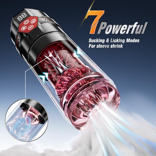 6-in-1 Automatic Male Masturbator with LCD Display: All-in-one design integrates thrusting, rotating, suction, vibration, vacuum pump, and app control. Features 7 thrust modes, 7 rotation modes, 7 suction modes, 7 vibration modes, and a 12-second vacuum pump. Built-in LCD screen shows mode status clearly.