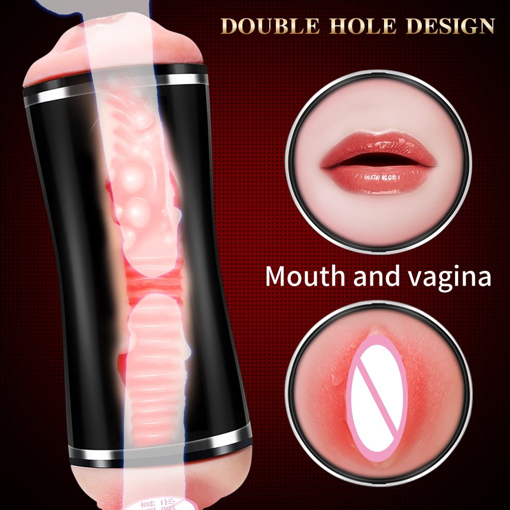 Male Masturbator Real Vagina and Mouth Dual Channal Masturbation Cup Vibrator Sex Moans Voice Pocket Pussy Sex Toys for Men