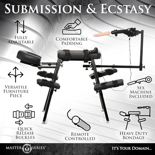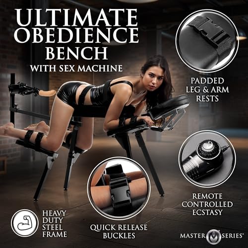 Master Series Obedience Bench with Thrusting Sex Machine: Adjustable BDSM Furniture for Men, Women & Couples. Ergonomic, Heavy-Duty Design with Remote Controlled Multi Speed Thrusting Dildo, Black.