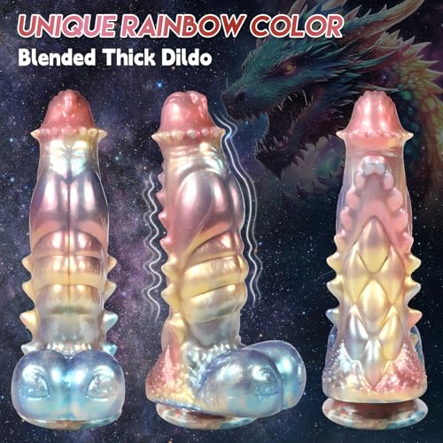 【Dazzling Rainbow Fantasy Dildo】🍆 Stand out with a rainbow-blended dildo that glitters with a golden sheen. Each shimmering detail makes this huge dildo as visually stunning as it is satisfying—because your pleasure should look as good as it feels. Bright, bold, and eye-catching, this fantasy dildo is a true showpiece in and out of the bedroom