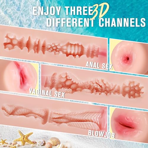 【Super Realistic 3D Stimulation Texture】Plump and fleshy 3D channels with unique particles inside each male masturbation sleeve, just the right amount of tightness for both a sucking sensation and three different channels for triple the excitement. The vaginal and anal channels allow you to enter as if you were inside a real woman, while the sensual lips are her sucking on your big cock. The soft and regularly shaped stroker allow you to squeeze and rotate them with your hands as much as you like, adding even more stimulation.