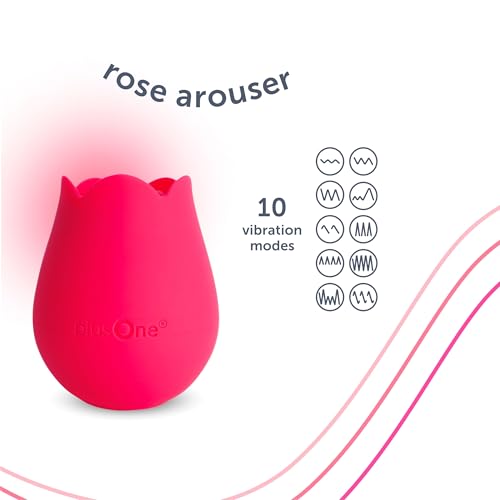 plusOne Rose Toy Vibrator for Women, Nipple and Clitoral Stimulator, Body-Safe Silicone, Waterproof, USB Rechargeable with 10 Pulsing Settings Sex Toy, Red