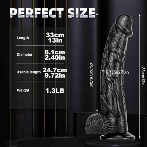 【13″Inch Giant Realistic Dildo – Deep, Intense Satisfaction】 Designed for those who crave more, this 13 inch black dildo features a 9.72″ insertable length and an ultra-wide 2.4″ girth. Ideal for fans of giant dildos, fist dildos, and extreme dildo girth. Whether you’re a beginner looking to explore or an experienced user seeking intensity, this sex toy delivers next-level fulfillment.