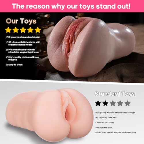 【Compact Size & Easy to Clean】 Made from premium platinum silicone, this lifelike pocket pussy is both substantial and surprisingly manageable. Measuring just 3.94 x 3.94 x 7.48 in(Internal channel length: 6.69 in) and weighing 2.6 lb. The premium platinum silicone pocket pussy deliver a more realistic feel while being less prone to oil buildup, easier to clean, and offering a longer lifespan compared to traditional TPE materials
