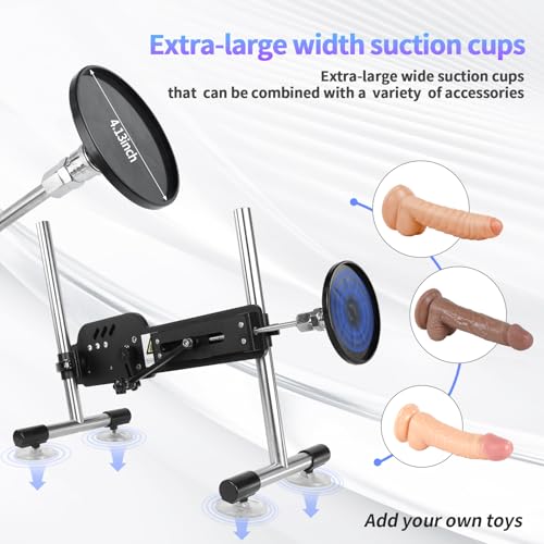 There are a wide variety of accessories: the sex machine can be connected to accessories with two different interfaces. The machine itself is adapted to air quick connectors and is also equipped with a 3xLR converter. It can also assemble accessories with 3XLR interfaces. This machine also provides 3 different sizes of dildo toys, which can be used in random combinations. The most special thing is that there is a 4.1″ suction cup adapter, which allows you to use your own suction cup toys, allowing you to enjoy the pure fun brought by the toys.