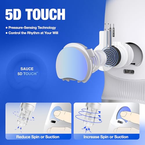 Pressure-Sensitive Male Sex Toy: This mens sex toy with 5D TOUCH sensor lets you adjust stimulation—light pressure slows spin and suction, while firmer pressure increases intensity.