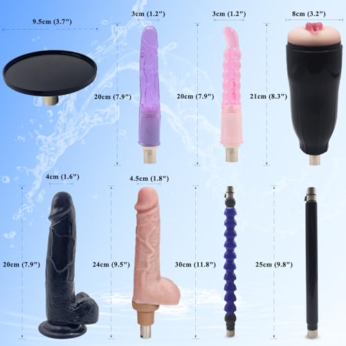 【Various Attachments】:This love machine comes with 8 different dildos and accessories. Dildos are made of soft materials. It’s easy to clean with warm water or sex toys cleaner.